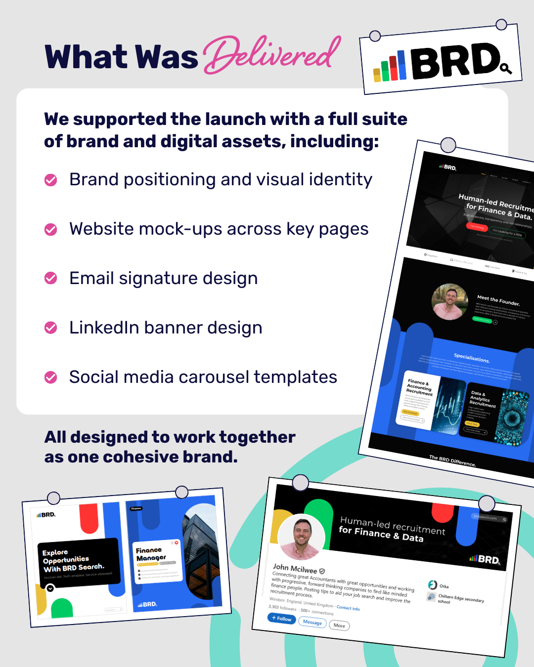 The final brand feels modern, trustworthy and human, helping BRD attract high-quality candidates and build long-term client partnerships from the outset.