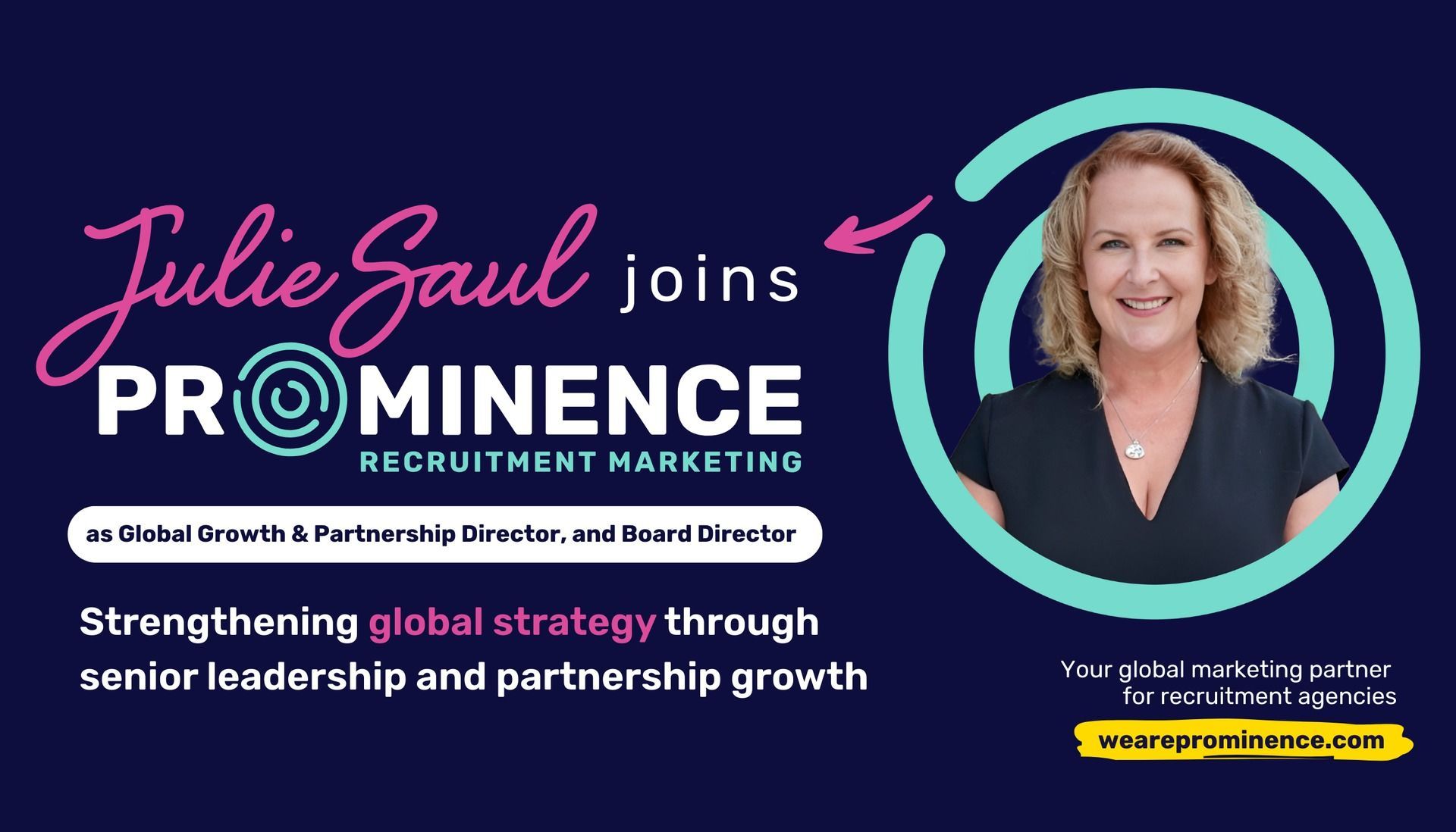 Prominence Recruitment Marketing is proud to announce the appointment of Julie Saul as Global Growth and Partnership Director and member of the Board of Directors.